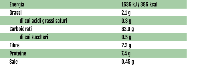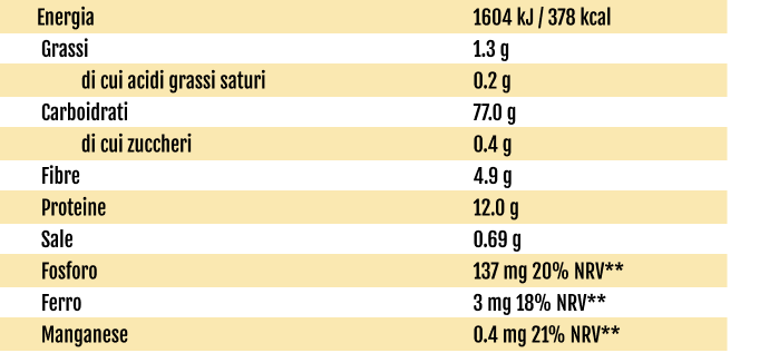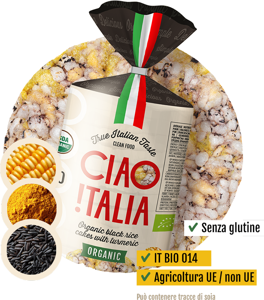 Ingredienti: riso Nerone* 60%, mais*, riso*, sale marino, curcuma* 0,3%. *Da agricoltura biologica.